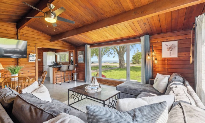 Modern log cottage with panoramic Lake Erie views, minutes from Hippo's patio! has 2 Bedrooms , 1 Bathroom, and max occupancy of 5 people. The minimum rental for this property is 1 nights, but this can change depending on the season you plan on staying. Previous guests have given good rated it, and VRBO labeled it a top-rated Cottage because of the excellent services rendered by the owner or manager of this Cottage, and has consistently provided great experiences for their guests. Most families or guests that use it recommend it to their friends and some of them are repeat guests. Cottage has a friendly neighborhood, and the Lowbanks has interesting places to visit. If you want to learn more about the Cottage in Lowbanks, such as places to visit and things to do nearby, you can check below to learn more.
