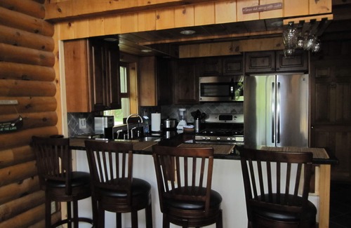 Modern Log Home with 70 feet of lakefront! Great Fishing and Swimming! | Ski Chalet in Wells