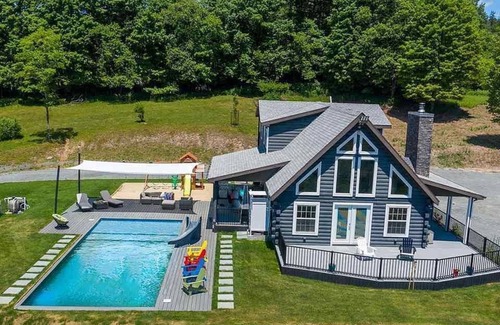 The 54+ acres include 150 apple trees, a pond and trails that will lead you to your own waterfalls!! Back inside there are 3 bedrooms, the master is on the 2nd floor and comes complete with ensuite bathroom, with large soaking tub and walk in shower and a well-sized balcony. The two guest bedrooms are on the lower level as well as a full bath. In-ground pool runs along the back of the house with plenty of deck space to lounge and relax.