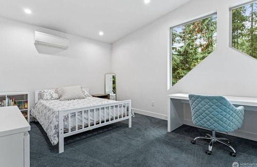 30 min Drive to MtBaker our home located in Glacier Springs has modern luxury amidst the beautiful forest. Canyon Creek & the River is a short 10 min walk. Our home accommodates up to 8 guests. Enjoy our natural light filled home, wonderful kitchen, large covered heated deck with tv to watch the game, custom Finnish sauna, the most luxurious primary bathroom with large soaking tub and heated floors.