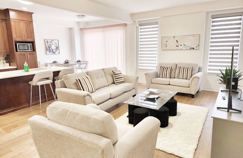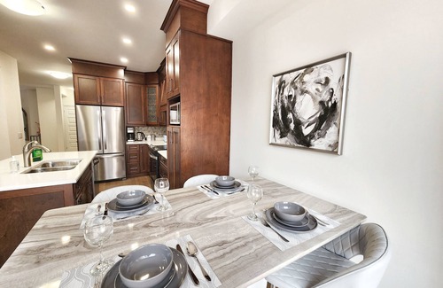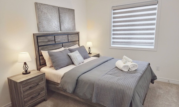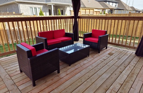 Modern, luxury new-built home in a quiet street. Ideal for travelling families or couples. Private bathrooms, super soft carpet, and firm bamboo mattresses are in each bedroom. Like a hotel, you get everything, but much more! privacy. The spacious open-concept main floor offers modern, stylish furniture, a 65-inch TV with Netflix, Disney+, and international channels, including sports and PPV. You can enjoy your private backyard with a wooden deck, BBQ, and outdoor furniture.