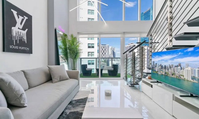 Modern luxury loft with water and city views is located in Brickell. Modern luxury loft with water and city views provides accommodation, featuring Internet, TV, View, among other amenities. This Condo features Internet, TV, View, to make your stay a comfortable one.