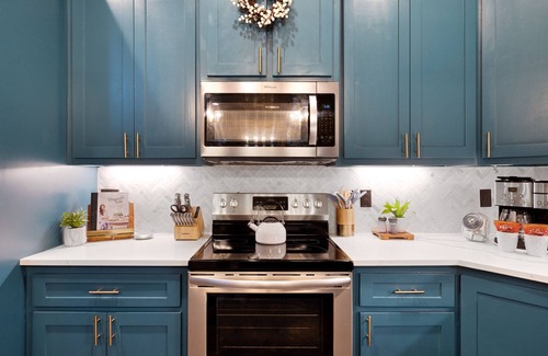 Stainless steel appliances & quartz countertops