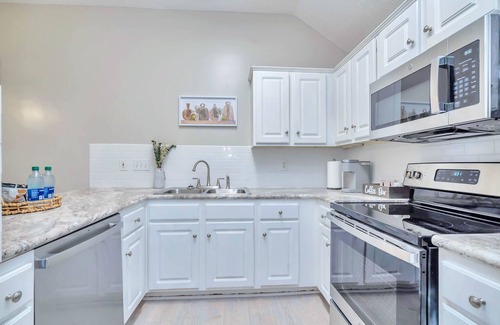 This Newly Remodeled home features 3 Bedrooms & 2 Full Bathrooms. Each bedroom is equipped w/ Queen Sized beds and medium firm Sealy mattresses assured to make a peaceful night sleep. The Primary Bedroom has a private en suite featuring a double vanity sink & a shower/tub combo. Relax in bed and watch your favorite movie on the 32" Smart TV which allows you to stream your favorite apps. To assist with meal prep, the Kitchen is equipped w/ an Electric Stove & Oven, Dishwasher and a Full Sized Refrigerator. Enjoy your favorite meal at the Breakfast Bar while enjoying a cup of coffee from the complimentary Keurig Kpods. A 65" 4K SmartTV is situated above the fireplace for comfortable viewing from the plush sofa or oversized chair. If traveling for work, the High-speed Internet will allow you to work seamlessly from any room in the house. Laundry Room has Washer & Dryer for your convenience. Coupled w/ the redesigned interior, the home is equipped with Private Patio seating perfect for conversation or morning coffee. Home is perfectly located. Within 5 minutes from multiple grocery stores, eateries, shopping, restaurants, movie theater, dog park & gas stations.