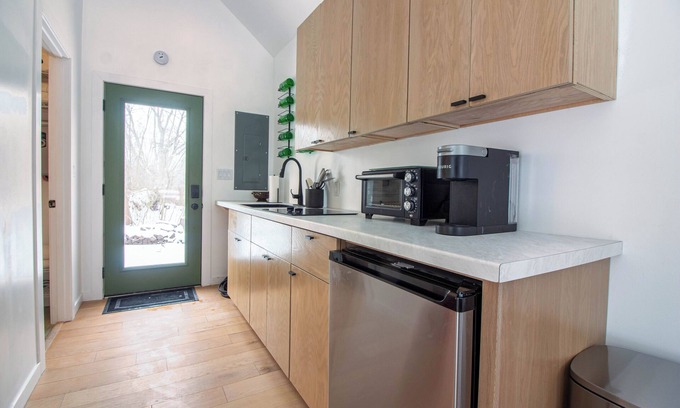 Escape to Black Sage Retreat, a beautifully designed, newly built luxury tiny home in South Haven—just blocks from the beach! Thoughtfully crafted for style and comfort, this 500 sq. ft. retreat offers a cozy yet upscale vibe with high-end finishes, a fully equipped kitchen, and a charming outdoor space.