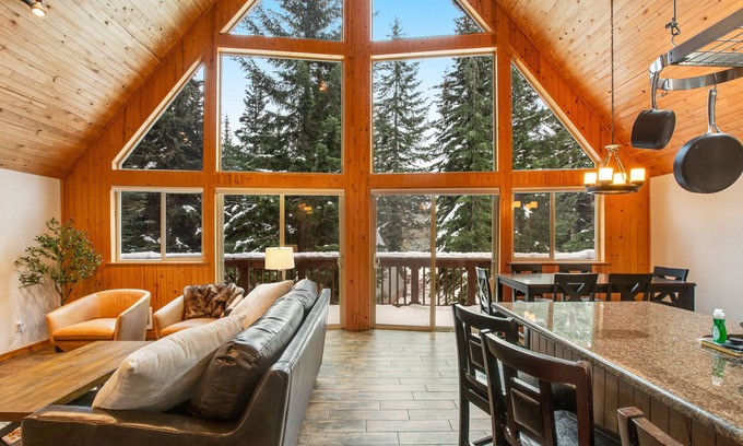 Indulge in modern mountain elegance at this Snoqualmie Summit chalet. Within easy reach of Summit lifts and facilities, this three-bedroom retreat also serves as a convenient year-round base camp for exploring Cascade lakes, hiking trails, and off-road vehicle recreation.