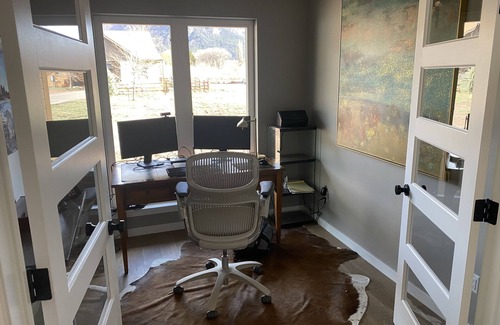 The home offers spectacular views, all amenities and comfort. Gourmet kitchen with all your cooking needs. Master has a king size bed, a spa retreat bathroom with a soaking tub and separate shower to relax after a long day of activities, Double vanities and a private porch. Two additional bedrooms (king bed / 2 twins) on the opposite side of the house with a shared bathroom. The backyard is fenced in for your pups with a 7' x 5’ rectangular fire pit for 6-8 adults. Hang out outside all year long enjoying the amazing mountain views while enjoying the gas fire pit and a beverage of your choice.