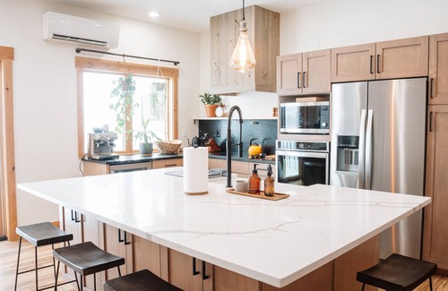 Guests will be able to access the condo through the ground floor entranceway. The garage is for the owner's use only. Please note that the Condo is on the second floor. Large windows, direct access to an oversized upper deck, and an open kitchen makes the home feel bright and spacious. The kitchen is fully equipped with brand-new appliances, utensils, a coffee maker, a blender, and more. On the deck, you will find a grill with all bbq essentials, and a comfortable sitting area to enjoy the sun setting on Boldy Mountain.