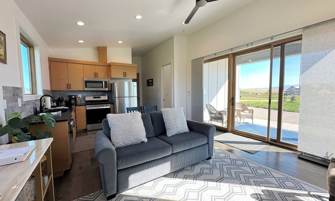 Conveniently located outside of Driggs, this chic guest home — just recently constructed — is the perfect basecamp for a small group, a couple, or solo travelers. This well-appointed space offers plenty of comfort and privacy, as well as amenities such as a well-appointed kitchen, a 1-car garage, and in-unit washing machines.