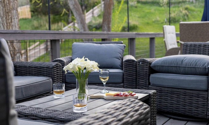 Watch a family movie or sporting event upstairs in our oversized down feather-stuffed sectional, or challenge the kids to a game of regulation-sized foosball, cornhole, or a wide selection of board games. Hike up the back of the nearly 3-acre property for a picturesque view of the Caribou National Forest, Scout and Slate Mountains. Enjoy complimentary coffee or hot chocolate on the covered deck overlooking the Portneuf Gap and Indian Mountain.