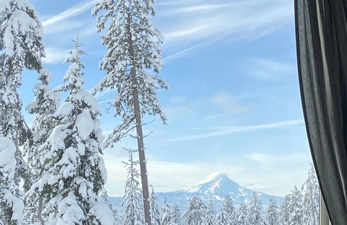 Nestled in the trees, you and your pets will enjoy the beauty and fresh mountain air of the great outdoors. Simply sit and stare at the majestic Mount Hood view, sip tea or coffee in the morning and wine/cocktails at night, or read and relax on the large cedar deck or screened-in cedar porch with heat lamps. Venture out for a walk, hike or snowshoe trip. There are marked trails of the 26 acres surrounding this Mountain View Retreat.