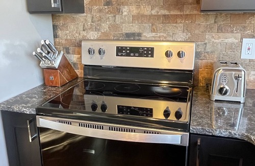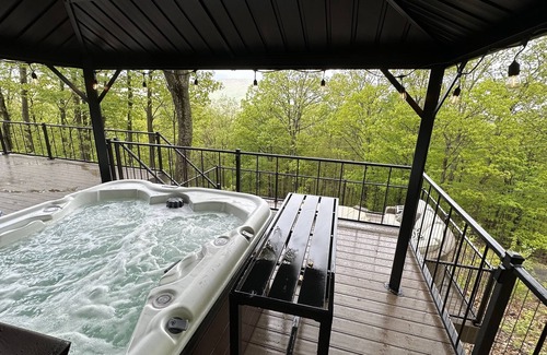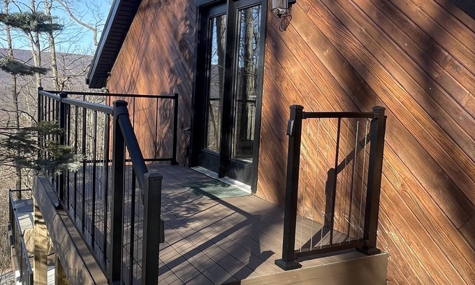 Enjoy the ultimate tranquility in this luxury wooded property nestled on the side of a mountain in James Creek PA . It has been newly remodeled in a modern rustic style. We have taken extra measures for cleanliness as my staff touches every surface. They have earn us over 200 combined five star reviews on our rentals. Sleep in the ultimate comfort on Serta hybrid mattresses with hypoallergenic and bed bug protectors. The house boasts a fully lit, 26 foot long main deck, side deck with a 5 person hot tub, and lower deck complete with a gas fire table seating. There are granite countertops throughout, elegant hardwood accents, knotty pine, all while adding a modern touch. If that's not enough, have a relaxing drink by the modern electric fireplace while watching internet TV. Wifi is provided at 200 mbps. The modern kitchen is well appointed with all items to make a gourmet meal with bar seating for 4; and a custom made, live edge maple dining room table for 4. The spiral staircase leads to a magnificent loft area, fully enclosed to keep those little ones safe. Provided are board games for kids and adults. Corn hole game can be played out on the deck! No need to pack linens, pillows, bedding, towels, or paper products. We provide those! Two bedroom, loft, two full baths. We are only 20 minutes from Blair County Airport. It is located just minutes to Shy Beaver Boat Launch, at Mile Marker 22. Sleeps 8.