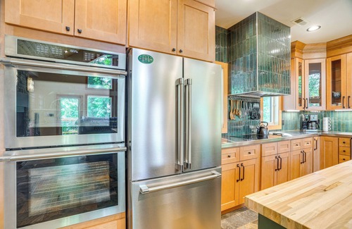 KITCHEN: Fridge, stove, dishwasher, Keurig/drip coffee maker (pods provided), Breville espresso machine, microwave, cooking basics, dishware/flatware, trash bags/paper towels, blender, electric skillet, baking pans, Dutch oven, French press, hand mixer