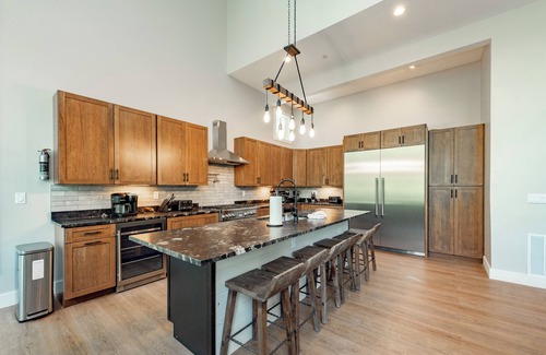 Vacation in luxury at this stunning modern, mountain, contemporary-style lakefront property located on a prime section of Deep Creek Lake! With every amenity you could need, Absolutely Shore is truly shore to please! The state-of-the-art, one-of-a kind, commercial grade kitchen is every foodie's dream. Just think of the possibilities! If one kitchen wasn’t enough, on those gorgeous summer days, use the outside kitchen with a pizza oven instead! The kitchen is just the beginning; the open concept main level will be the prime place to entertain and hang out with plush furnishings, a beautiful modern gas fireplace, and jaw-dropping window views. Take in the views of the shimmering lake in the summer, the changing of the leaves in the fall and the cascading snow in the winter. Relax on the deck, the expansive dock, in the yard, or on the boat and take advantage of the view and the fantastic location. Spend the days out and about enjoying the area and all that it has to offer. Mini golf, go-karts, the Wisp Resort and various state parks and hiking trails are just minutes away. Even on those cold, rainy, and slightly less ideal days, this home has you covered! Head to the half-court basketball court for a 1-on-1 game or take a dip in the indoor pool or relax in the bubbles of the hot tub. This home goes above and beyond with style, comfort, and amenities. And if it couldn’t get better, make sure to pack for your four-legged friends; this home is pet friendly too! From family reunions to corporate retreats to friend get-togethers, Absolutely Shore is absolutely the place to be! Book today!