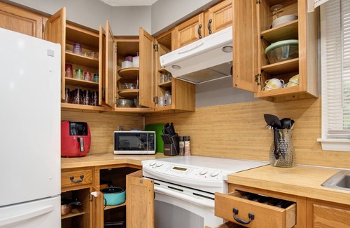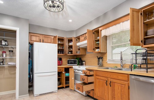 Rental includes kitchen stocked with plates, dishes, glasses, and bake/cookware, toaster, air fryer, k-cup machine, mixer-grinder, waffle maker, chopper etc. Front Porch, Dinning Room & Living Room beautifully designed