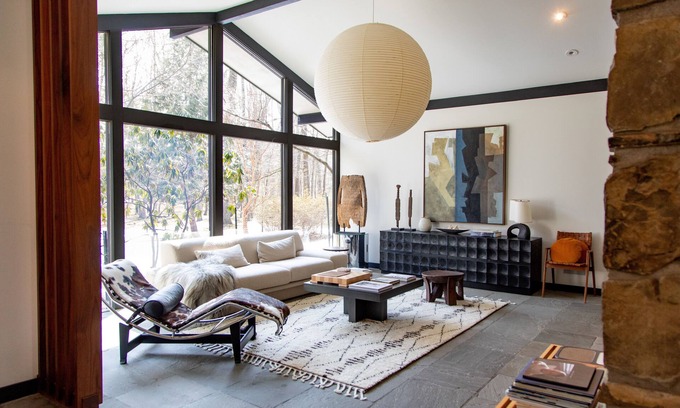 This mid-century estate designed by local design firm The Art of Building is only minutes from the Village of Rhinebeck and completely furnished with modern designer furniture. The house sits on 10 completely secluded acres has a heated saltwater pool with an infinity edge. Don't miss the dry sauna and steam room. Creature comforts include six zone radiant HVAC, a wood stove, an Apple sound system, and a large deck for entertaining. Ideal for 25/26 school year!