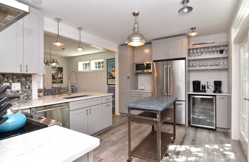 Salt Water Pool, Dogs Allowed, Outdoor Recreation - Steps to Beach and Boardwalk Classic Rehoboth house updated with modern amenities with salt water swimming pool in the heart of Rehoboth. 2 1/2 blocks from Beach. 1 block from Rehoboth Avenue - near Starbucks, Dogfish and Summer House - but on quiet residential block. Off-street driveway parking for four cars, along with a JuiceBox car charger! All new kitchens and baths. Front porch, outdoor shower. Large open kitchen and family room with immediate access to deck area. Living room and extensive outdoor living area with screened porch where there is also a TV, and upstairs and downstairs decks. 30' Pool in fenced rear yard with newly installed salt water system. Completely updated two zone AC system with UV air filter system. Four Bedrooms. Including 2nd Floor Ensuite Bedroom with Private Bathroom and Queen Size Bed Front Bedroom with twin beds Rear Bedroom with full bed and single bunk bed above it.. Second Floor hall bathroom with full bathtub. 1st Floor Bedroom with Queen Bed and Single pull out couch. 1st Floor Bathroom with walk-in Shower and private changing area. Property wide wifi and premium cable service - with TVs in Living room. Bring your Netflix and Amazon sign-ons for Smart TV use. One medium sized dog allowed with pet fee. Pet fee is based on length of stay. House, pool, AC Systems and appliances all professionally maintained by local vendors. CAR CHARGER! Pool openings are not guaranteed in the off season, please confirm with your agent. NO BEACH WEEK OR GRADUATION CELEBRATIONS ARE PERMITTED.