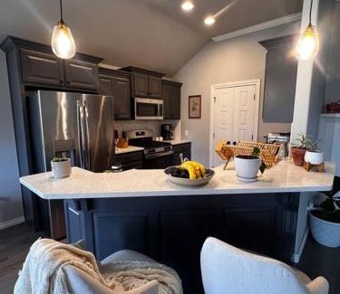 Modern Retreat by Airport is located in Oklahoma City, just 7.6 miles from White Water Bay and 12 miles from Oklahoma City Museum of Art. This property offers access to a patio and free private parking. Outdoor seating is also available at the vacation home. With free Wifi, this 3-bedroom vacation home features a flat-screen TV, a washing machine, and a fully equipped kitchen with a dishwasher and oven. The air-conditioned unit at the property features a bath and a dressing room. For added privacy, the accommodation features a private entrance. Oklahoma City National Memorial is 12 miles from Modern Retreat by Airport, while Chesapeake Energy Arena is 12 miles from the property. Will Rogers World Airport is 5.6 miles away.