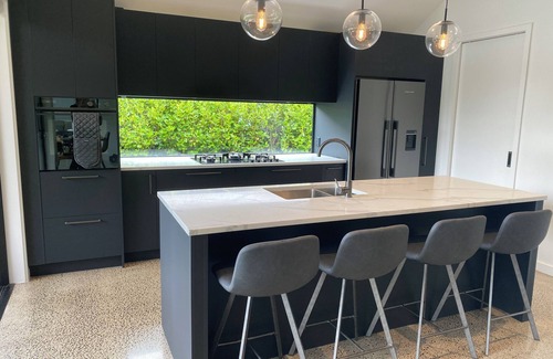 At the house, you’ll find everything you need to feel at home. The fully equipped kitchen is perfect for cooking up meals, while the polished concrete floors with underfloor heating provide a touch of luxury and warmth. The open living spaces lead to a stunning outdoor sunken lounge with a cosy fire, and a covered deck with outdoor seating and BBQ, making it easy to relax after a day of adventure.