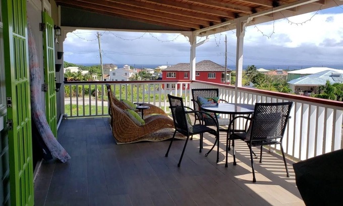We offer bright open spaces, a generous patio with a gorgeous ocean view, tropical breezes and an idyllic lifestyle. Our quiet enclosed mature garden set on a cul-de-sac offers retreat and serenity and just enough interaction to keep you stocked and happy with nearby neighbourhood small businesses that provide local food and treats. A quiet evening walk will take you to the cliffs 5mins away that overlook the Atlantic Ocean, complete with sea grape picking and adventurous treks down to the salt pools and blow holes. The view is simply amazing and the occasional whale sightings in January-April makes it an adventure every day of the week.