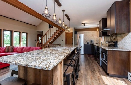 Modern Rustic Lodge! 2 min walk to Ski Slopes, 6TVs, Linens, WiFi, A/C, Firepit is located in Bushkill. Modern Rustic Lodge! 2 min walk to Ski Slopes, 6TVs, Linens, WiFi, A/C, Firepit provides accommodation, featuring Bedding/Linens, Wellness Facilities, Fireplace/Heating, among other amenities. This Cabin features Bedding/Linens, Wellness Facilities, Fireplace/Heating, to make your stay a comfortable one.