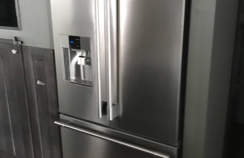 Relax in the comfort and convenience of stylish furniture and modern appliances, while surrounded with flourishes of 100-year-old reclaimed wood. Concrete countertops encompass a gas stove, where you can cook an entire menu using the fully stocked kitchen and spice cabinet. Use the wine fridge and dry bar for refreshments after your day’s adventures.