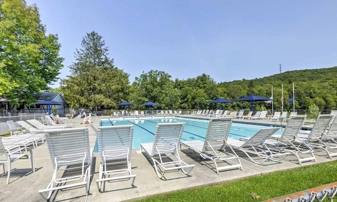 The property is less than 15 minutes away from Bushkill Falls, Shawnee ski/snow tubing resort, & Watertown Gap. There are 5 golf courses within 20 minutes of the house. Less than an hour from Camelback ski resort/water park, Mount Airy casino resorts, Pocono outlets (over 125 stores) & many more. At Saw Creek Estates, you can enjoy the comfort and security of a gated community. Amenities include 2 indoor pools, 4 outdoor pools, 3 hot tubs, indoor and outdoor tennis courts, 2 lakes, a beach, racquetball courts, a fitness center, ski hill with lift, a baseball field, basketball courts, meeting rooms, the Two Restaurants atop the development, and many events for everyone. Please note: fees for these listed attractions/amenities are not included in the rental rate. We have, free, off Street parking for 5 vehicles at the home.