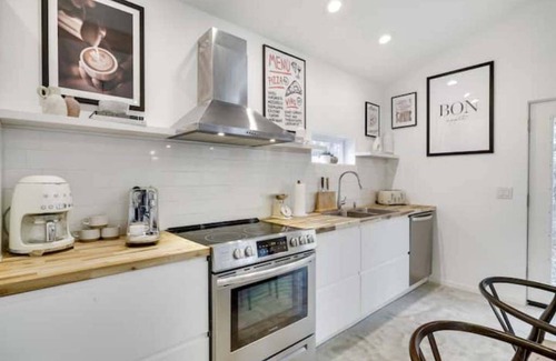 ☀Simple open-shelf style kitchen is stocked with everything needed for a perfect home-cooked meal (pots, pans, quick boil tea kettle, drip coffee maker, utensils, dinnerware etc.)