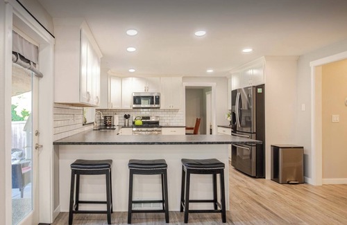This 4-bedroom house spans over 2200 square feet and is perfect for your escape to Olympia. You're gonna love the 3 king beds and 1 full bed. You will love the air conditioning, large walk in shower, updated bathrooms, kitchen, large covered patio overlooking calming waterfall. Close to freeway and shopping makes this house perfect for your stay in Olympia.