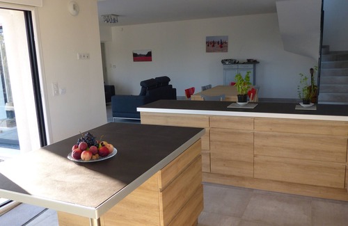 • Equipped kitchen: oven, microwave, large fridge / freezer, induction table, robot, electric coffee maker, Nespresso coffee machine (capsules not included), Dishwasher,