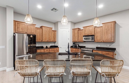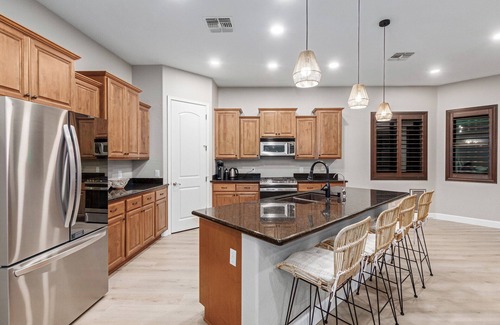 Kick back on the massive sectional couch while streaming your favorite shows on smart TVs scattered throughout the place. The cabana-style pool is your private paradise, complete with lounge chairs and comfy beds—perfect for soaking up the sun or snapping that picture-perfect IG shot!