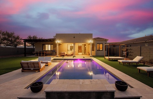 Modern South Mountain Heated Pool Trails Fire Pit is located in South Mountain. Modern South Mountain Heated Pool Trails Fire Pit provides accommodation, featuring Air Conditioner, Pool, View, among other amenities. This House features Air Conditioner, Pool, View, to make your stay a comfortable one.