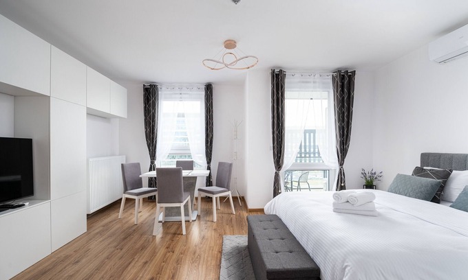 Modern Space Glamour Studio is located in Wlochy. Modern Space Glamour Studio provides accommodation, featuring Air Conditioner, TV, Wheelchair Accessible, among other amenities. This Apartment features Air Conditioner, TV, Wheelchair Accessible, to make your stay a comfortable one.