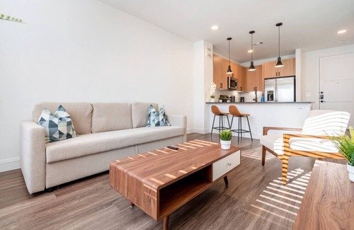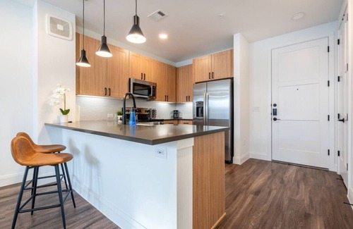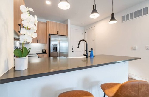 Discover your tranquil retreat in Austin! This 650 sq ft modern condo accommodates up to 4 guests, boasting a luxurious King bed and sofa bed. Ideal for festivals, getaways, or work trips, it's equipped with a full kitchen and in-unit washer/dryer for convenience.