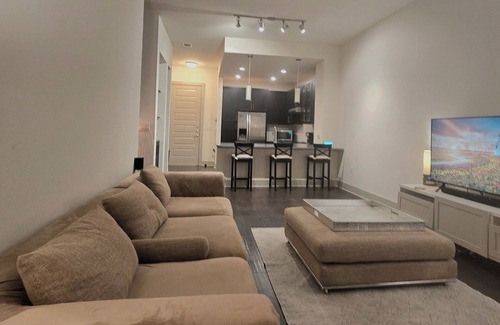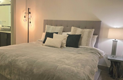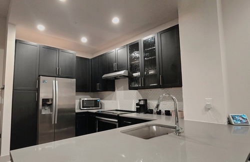 This newly built, spacious unit is thoughtfully designed for long-term stays (14+ nights), blending style, comfort, and convenience. Relax in a luxurious king-size bed, enjoy dual sinks and walk-in closets in the bathrooms, and take in the high ceilings that create an airy, open feel. The full kitchen is perfect for cooking, and the beautifully decorated interior adds a touch of sophistication.