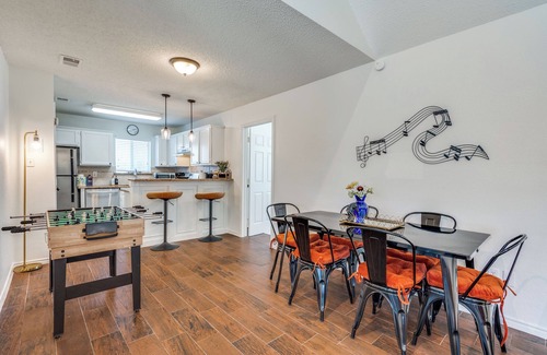 Enjoy the entire home to yourself! Step into an inviting open-concept living space that flows effortlessly into the dining area and kitchen. The dining table seats six, and the kitchen bar offers extra space for two—perfect for quick breakfasts or casual meals. Challenge friends or family to a friendly match on the multi-game Foosball table in the dining area!