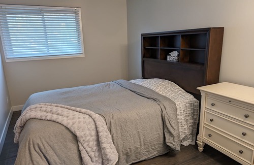 The house offers unlimited fast wifi. Bring your login information for your favourite apps and you are all set to go for your movie night. Upstairs features two bedrooms -- one being a Dinosaur themed house bed for any little ones, the other a simple but elegant master bedroom. Beyond the deck the backyard is equipped with toys appropriate for children 2-8.