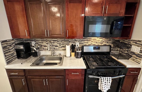 Welcome to the Modern stay ! This English basement apartment is filled with an open floor plan . It’s complete with a full kitchen, dinning area, washer/drying rack, and living room allowing for plenty of room to sit around, enjoy watching TV, or playing a game. There is also a dedicated work space with a desk and a chair.You will find the bathroom on your way to the primary bedroom. The primary bedroom is complete with queen bed, dresser, closet, and full length mirror. It’s located in Lamond Riggs community in DC. Walking distance to a shopping center that features a Walmart ,coffee shop ,Chick-fil-A restaurant,One-life fitness center and Fort-totten metro station.