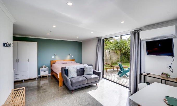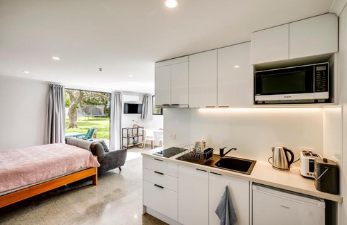 Offering a garden, Modern Studio near Clive River offers accommodations in Clive. This property offers access to a patio, free private parking, and free Wifi. Outdoor dining is also possible at the guest house. The air-conditioned guest house consists of 1 bedroom, a living room, a fully equipped kitchenette with a microwave and a kettle, and 1 bathroom with a shower and a hair dryer. Towels and bed linen are featured in the guest house. The accommodation is non-smoking. McLean Park is 6.2 miles from Modern Studio near Clive River, while Splash Planet is 6.2 miles away. The nearest airport is Hawke's Bay Airport, 11 miles from the accommodation.