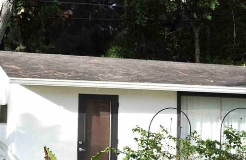 The studio shares the property with another house, studio is located right behind the main house, which is a complete separate unit. When arriving at driveway, parking is only allowed left side of the driveway facing the property, you only have access left side of the gate and there is a pathway to the studio.