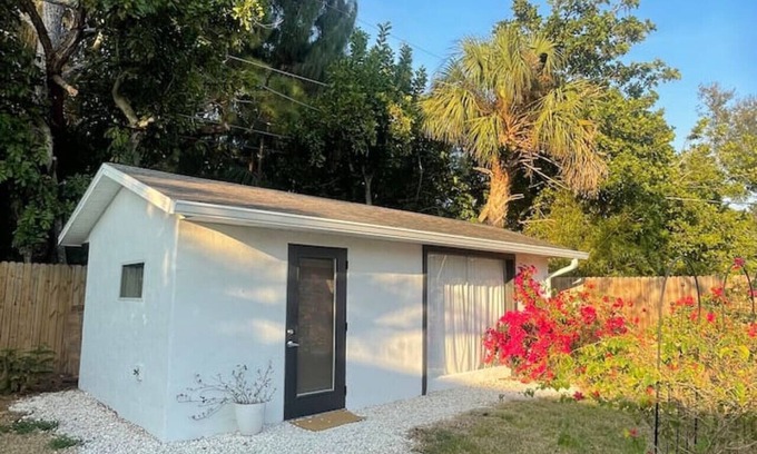 Escape to a serene retreat in this stylish 250 square-foot-studio, designed for comfort and relaxation. Ideal for couples seeking adventure. Conveniently located, this space is a 5 minute drive from the airport, 15 min to vibrant downtown Sarasota and 20 min from the beautiful shores of LIdo Key. Inspired by the charm of Santorini, the studio features exceptional interior design, creating a tranquil ambiance. Whether you're exploring or unwinding, this is the perfect haven for your stay.