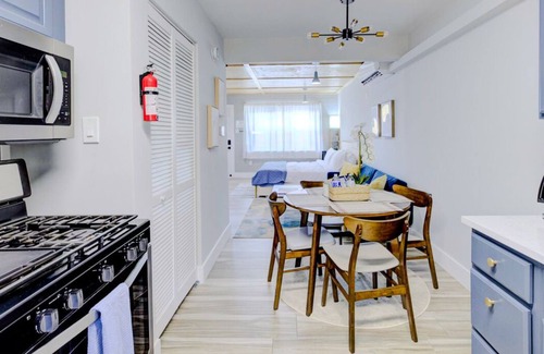 Immerse yourself in a picturesque oasis at the heart of downtown Memphis's Victorian Village. Experience an enchanting stay in a newly renovated studio with modern decor, positioned in front of century-old villas.