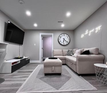 A recently renovated apartment, Modern Suite in Etobicoke - Near Airport & Downtown! offers accommodations in Toronto. Housed in a building dating from 1985, this apartment provides free Wifi and free private parking. Casa Loma is 6.7 miles from the apartment and Aviva Centre is 7.4 miles away. The air-conditioned apartment consists of 1 bedroom, a living room, a fully equipped kitchen with a dishwasher and a coffee machine, and 1 bathroom with a shower and bathrobes. A flat-screen TV is provided. For added privacy, the accommodation features a private entrance. Guests can also relax in the garden. BMO Field is 7.7 miles from the apartment, while Budweiser Stage is 7.8 miles away. Toronto Pearson International Airport is 6.2 miles from the property.