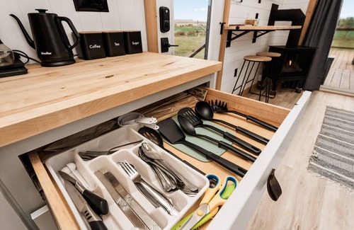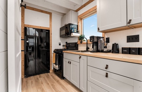 This unique, cozy tiny home has all you need for a wonderful stay.