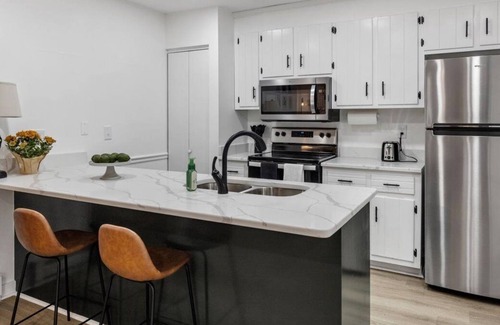 This beautiful 2 bedroom/1 bath home has been elegantly updated with modern furniture/amenities and is ready for your next stay! Book your next stay here and see all this property has to offer. Clean & fully renovated home that features a modern kitchen with stainless-steel appliances, quartz countertops, kitchen island, modern living room with lots of natural light and comfortable sofa, foyer office area perfect for working professionals, two comfortable bedrooms, two outdoor sitting areas perfect for entertainment, and so much more!