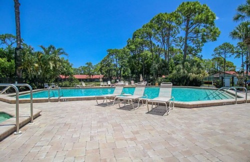 Modern Vacation Villa with Resort like amenities including a large heated pool, jacuzzi, barbecue area next to picturesque pond with picnic tables. Putting green, 2 tennis courts, pickle ball, basketball courts and shuffleboard.