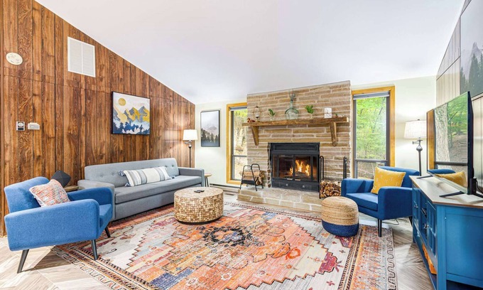 Modern w/Fire Pit, Deck, Grill & Hot Tub is located in Sleepy Hollow. Modern w/Fire Pit, Deck, Grill & Hot Tub provides accommodation, featuring Pet Friendly, Balcony/Terrace, Sports/Activities, among other amenities. This Cabin features Pet Friendly, Balcony/Terrace, Sports/Activities, to make your stay a comfortable one.