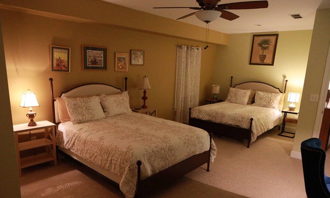 Located in the quaint town of Covington, Georgia we are 10 minutes from the Historic downtown known as a film town, home to locations from "My Cousin Vinny", "The Dukes of Hazzard," "In the Heat of the Night" and most recently, "The Vampire Diaries" and "Sweet Magnolias," along with 140 other films. The thriving downtown has locally owned boutiques, antique stores, ghosts tours, and buzzing restaurants. Our home allows for a private entrance for our guests with an outdoor porch, outdoor fire place, and seating area to enjoy the serene views. The bedroom offers 2 queen-size beds and a pull-out sofa. Perfect for sleeping a family. The space offers a fully-equipped kitchen with new appliances. There is a laundry room adjacent to the bathroom. The living area is 2500+ square feet with a media room and pool table for our guests to enjoy. There is a work-station perfect for working from home with strong wireless internet. Additional community amenities available upon request from the hostess.
