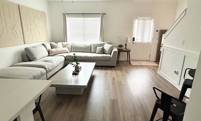 Welcome to this charming and modern smart townhome at Discovery Point in Huntsville! This beautiful property offers 3 cozy bedrooms with 2 queen, and a twin bed, ensuring everyone in your group has a restful night’s sleep. With 3 full size and fully equipped bathrooms, getting ready each day is a breeze. The home boasts stunning interior design paired with thoughtfully curated modern amenities to provide a welcoming and comfortable stay. This cozy and modern smart home is tucked away in a safe, quiet, family‑oriented community, perfect for unwinding both indoors and outdoors. The open floor plan offers plenty of comfort, making it a great choice whether you’re heading out to explore or staying in to relax.