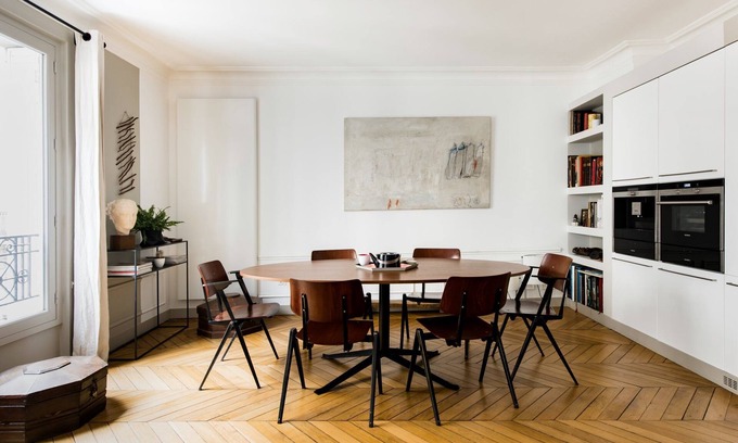 Live a local's lifestyle from this iconic Parisian residence. The space features contemporary amenities contracted by original details, herringbone and hardwood floors, designer furnishing and decor and street view Juliette balconies.